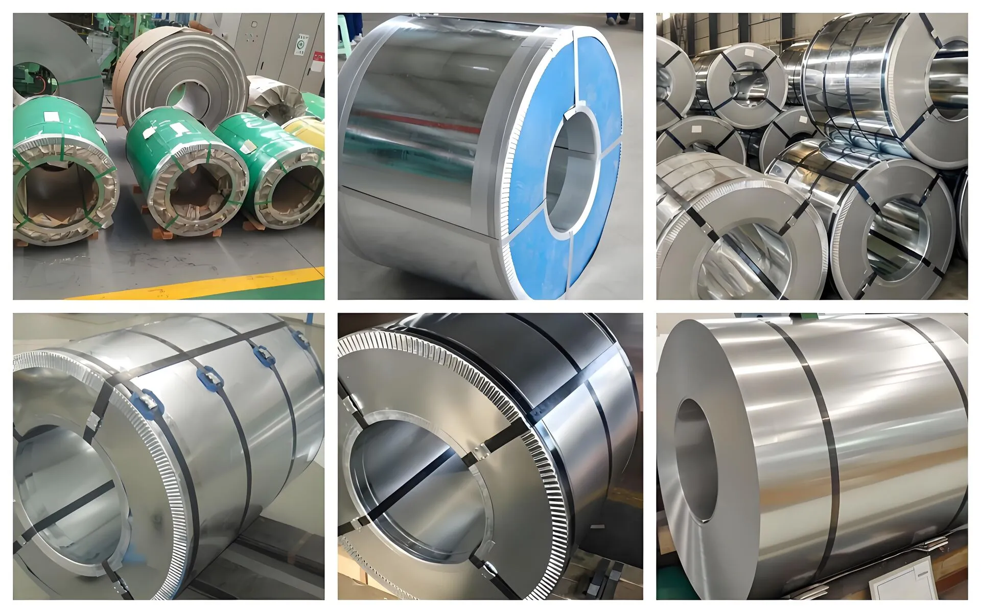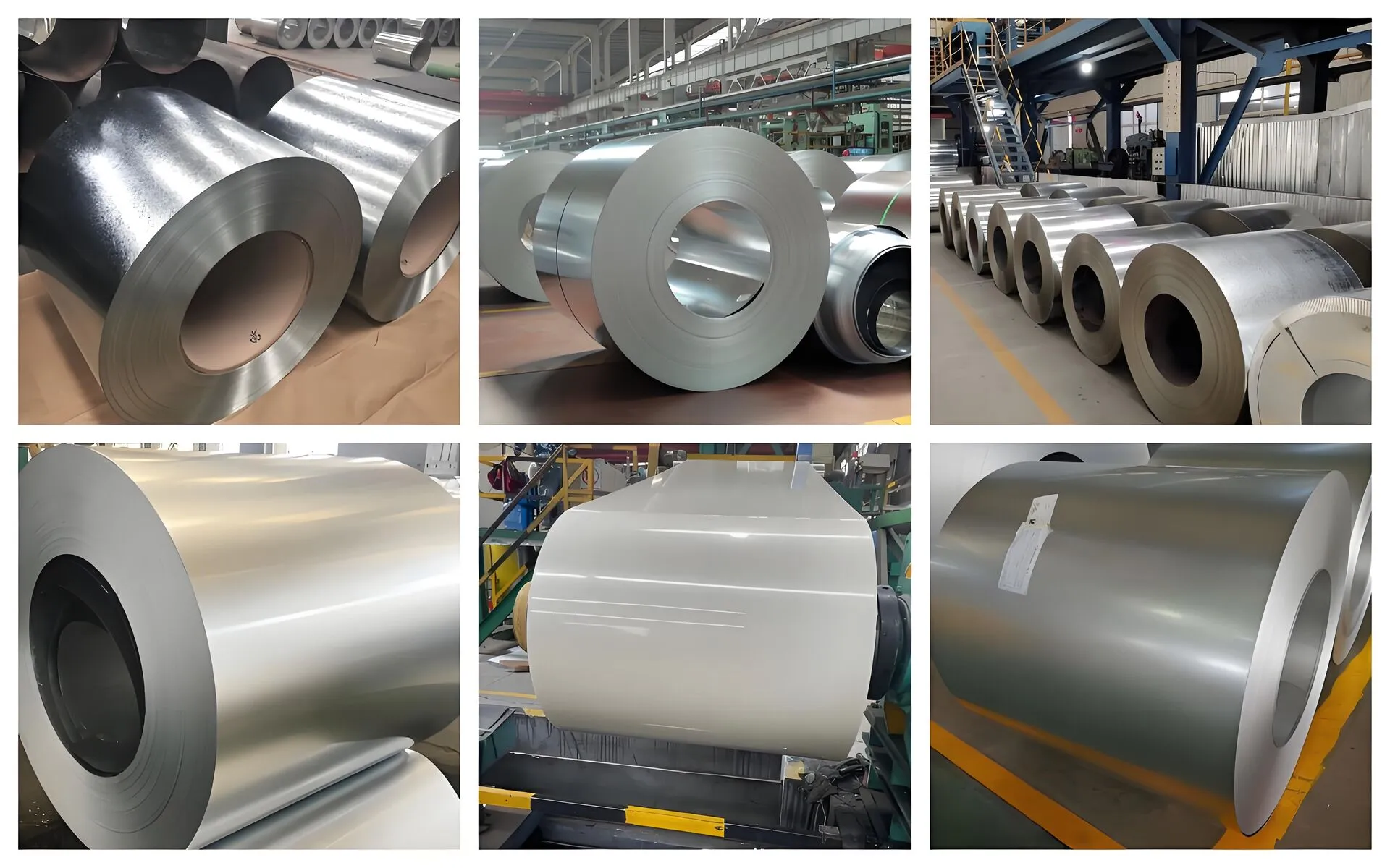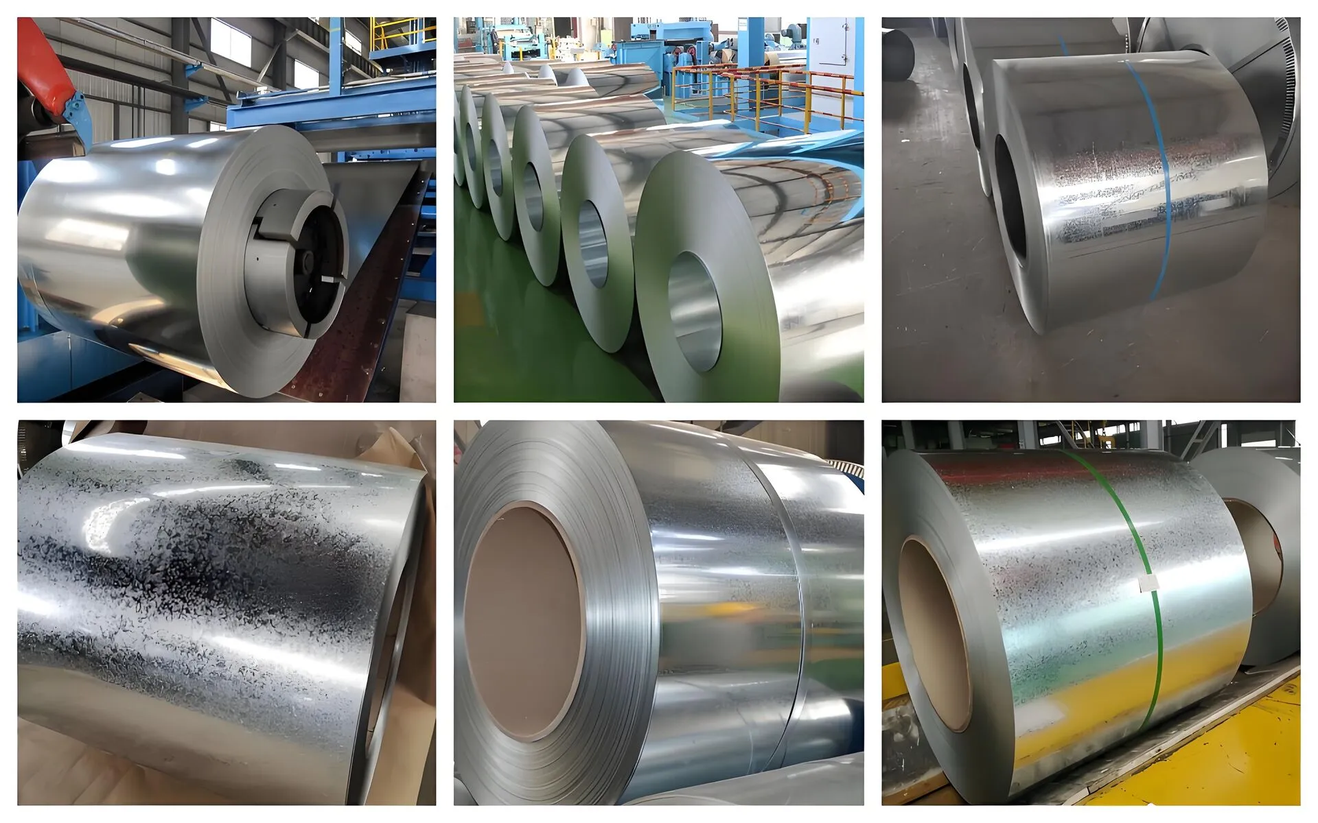 Galvanized steel coils typically present a metallic silver-gray color with a smooth surface and a shiny finish due to the zinc coating. The surface can have different textures depending on the galvanization process, such as regular spangle, minimized spangle, or zero spangle finishes.